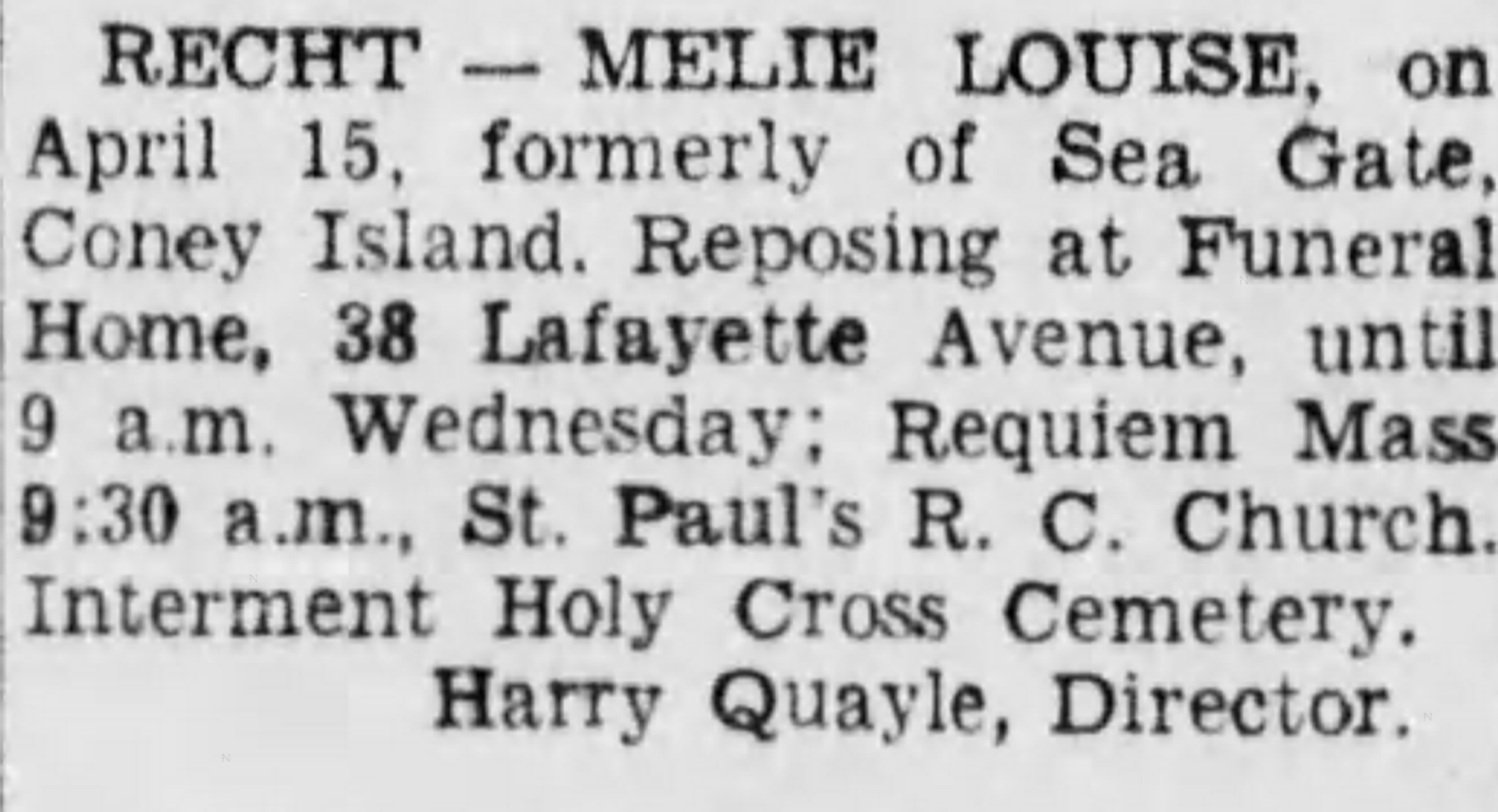- Death Notice – Brooklyn Eagle, April 16, 1951