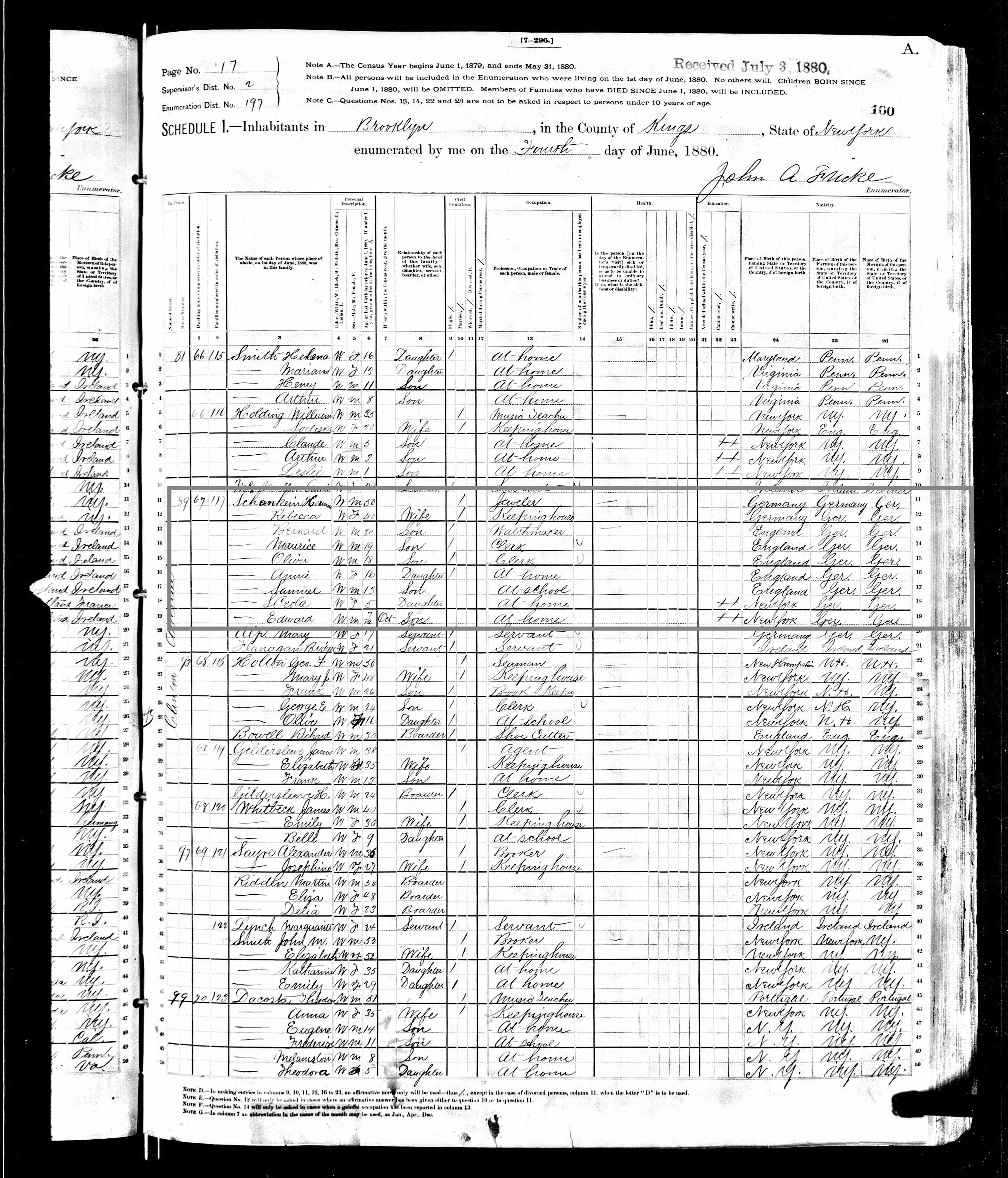 - Schenkein Family – US 1880 Census