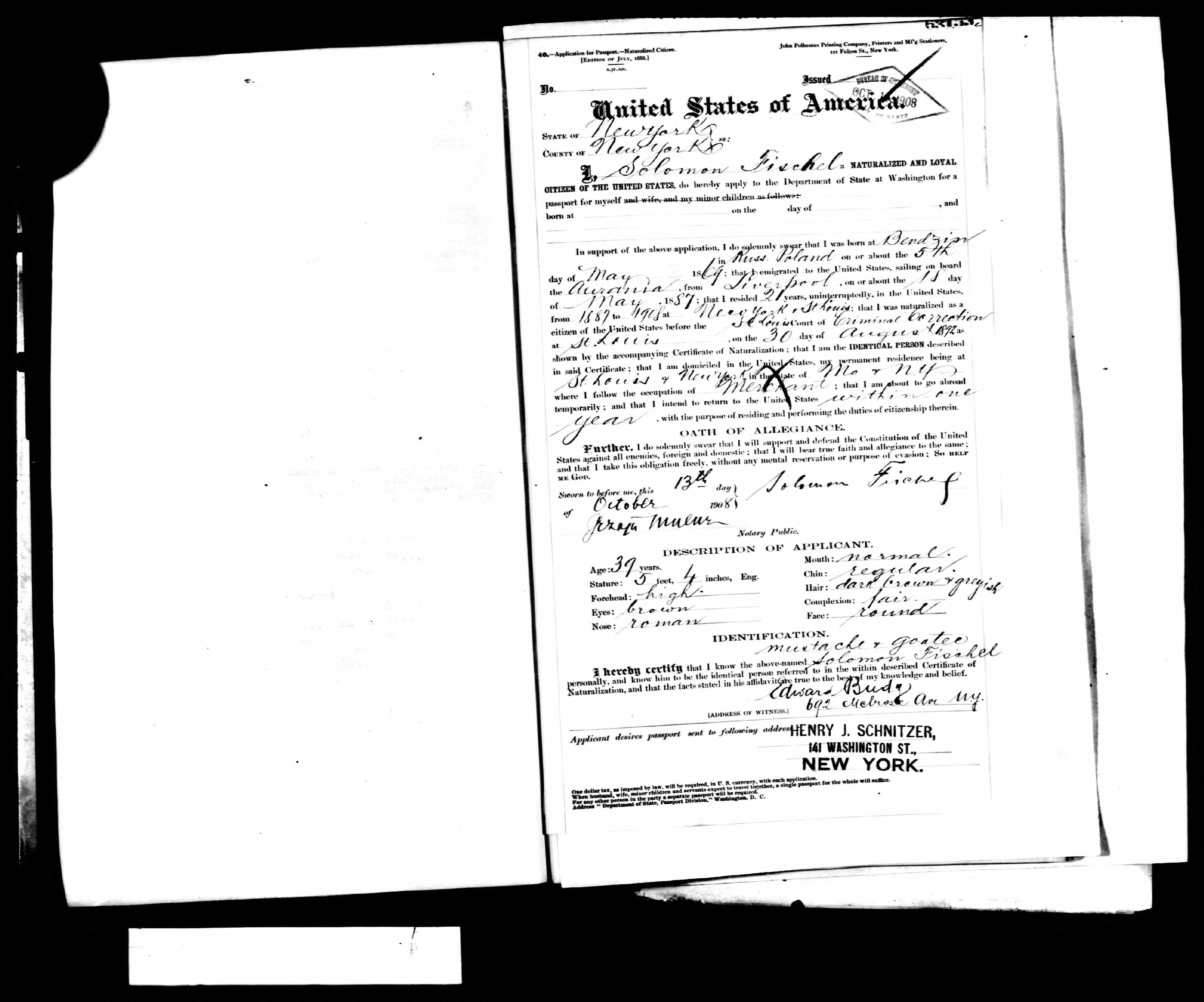 - Fischel’s 1908 Passport Application