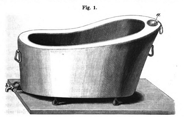 More recently, Winckel had a device built [3] to keep premature, weak, and sick children in a warm water bath for days, continuously or with only brief interruptions. I refer to the original text and illustration, since without the latter the device is difficult to understand.