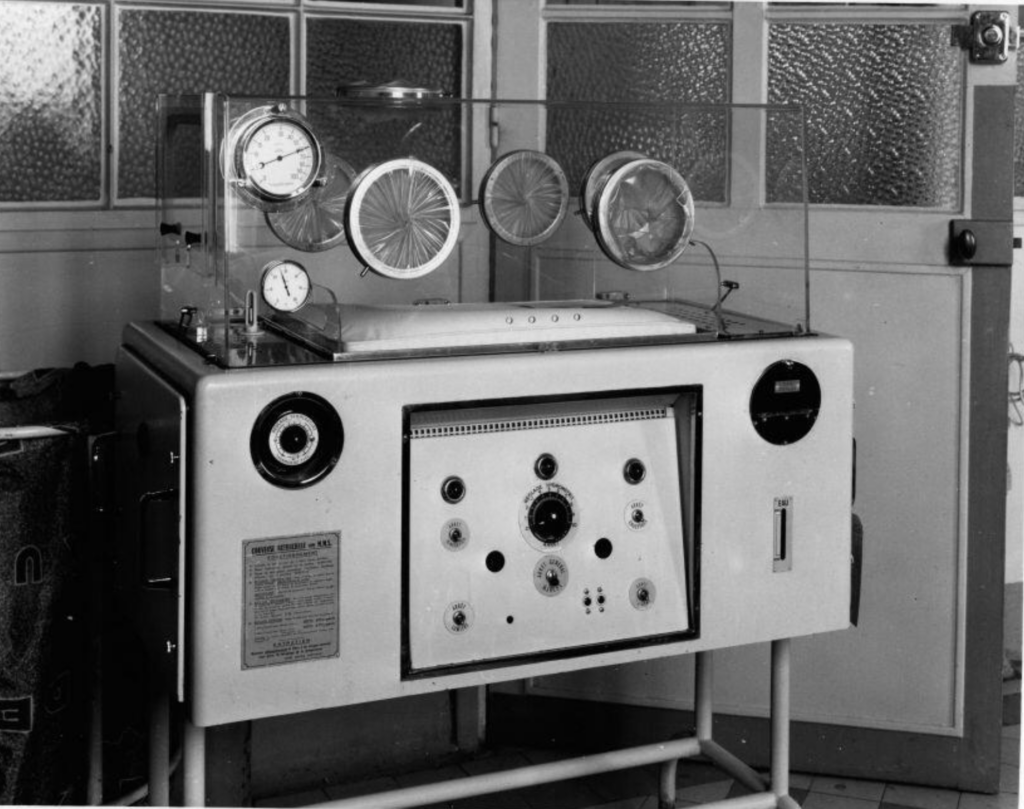 Above: Incubator manufactured by Oxygenaire Ltd., London, 1955.