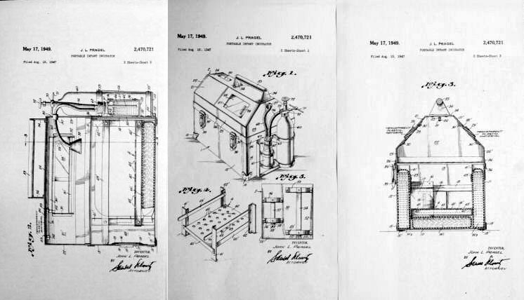 The patent states: This invention relates to a portable baby incubator which is particularly useful in the handling and treatment of prematurely born infants. It is the object of the present invention to provide a portable baby incubator which is readily transportable from place to place and which may function as an infant’s bed or ambulance for prematurely born infants, accommodating them for proper treatment from a time immediately following birth to such a time when they are in a sufficiently healthy and mature state to be disposed in a conventional baby crib or bassinet.