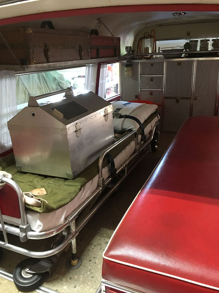 Nicholas Studer was kind to supply pictures of the Pragel incubator in an 1963 Pinner-Chrysler ambulance (https://www.allpar.com/fleets/pinner.html).