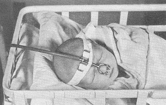 Above: “Technique of transfusion. We use a scalp vein with success. Care must be taken not to introduce blood too rapidly since it may escape into surrounding tissues.”