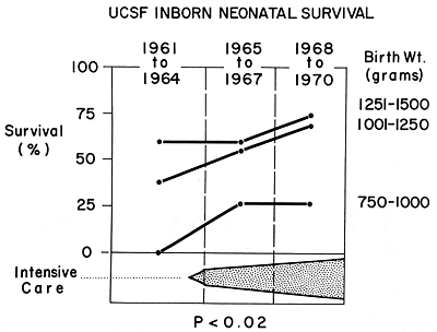 The use of continuous positive airway pressure and respirators then made neonatal care truly “intense.” The radiant warmer contributed to the ease with which aggressive care could be given and nearly all centers reporting on outcome began showing improved long-term results (Figure 4).[9]