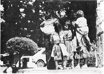 In Santa Maria Cauque,[11] a village located in the highlands of Guatemala, preparation for motherhood starts early in childhood. The birthing process, breast feeding and rearing of children are part of everyday life. No formal preparation is carried out and knowledge is obtained through experience and from frequent advice from adults. Infants, children and young adolescents are constantly exposed to all different aspects of child rearing and participate eagerly in this task (see Figures 2-3). Maternal-infant interaction starts immediately after birth, breast feeding is universal and, as with the hunters and gatherers, infants are carried on the mother’s back (see Figure 4).