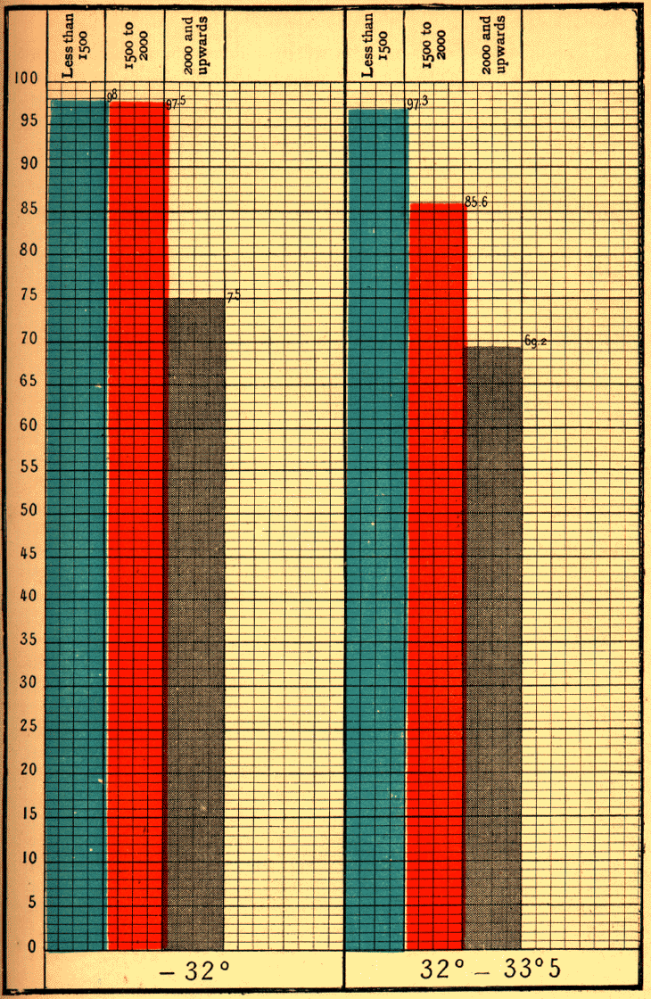The mortality, then, has been almost 98 per cent. This is truly appalling. Evidently other causes, such as syphilis and digestive troubles, ought to be taken into account, but the lowering of the temperature played the principal part and rapidly brought about the end.