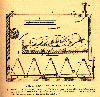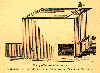 It is composed of a plain wooden box, 65 centimetres long, 36 broad and 50 high (Fig. 3). The walls are 25 millimetres thick. The interior is divided into two by a horizontal partition, situated about 17 centimetres from the bottom. At one end this horizontal partition is incomplete, so that air passes easily from one compartment to the other.