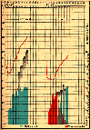 Fig. 40. Puny weakling first fed with the milk of a wet-nurse (blue columns), the mother in the meantime suckling a stronger infant in order to bring about the establishment of her mammary secretion (red column). The mother became capable of nursing her child unaided. |