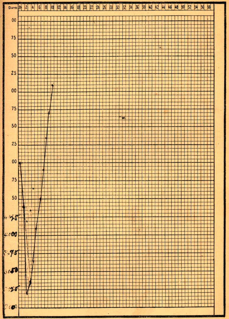 Fig. 59. Weight curve of a dying infant, showing increase of 250 grams in the last twenty-four hours of life. |