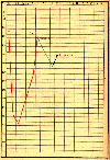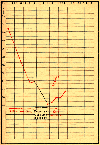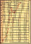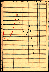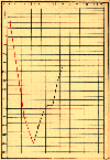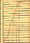 For several years I have used charts on which to record the infant's weight. If all the figures within the probable range were to be printed on the chart, it would be either too large to be easily handled, or, if the chart were reduced to a convenient size, the variations of the curve would be so small as to be almost imperceptible. My charts are of a uniform and manageable size, 36 cm. long and 26 cm. broad (Fig. 44). The space between each of the fine horizontal lines represents a difference of 5 grams; before the lines of medium thickness are placed the figures 25, 50, 75; and heavy lines indicate the hundreds. As the latter on the printed chart are represented by zeros only, we have at our disposal a sort of movable scale. It is necessary only to place before the zeros the figures representing in hundreds the weight in grams at birth. If, for example, the infant weighs 3500 grams, 35 is written before the two zeros. As the length of the chart allows a difference of 600 grams, there is generally sufficient scope to record all the variations which may arise during a stay in hospital of twenty days.
