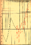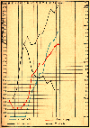 Fig. 49. Maternal feeding inadequate at first. Mother's efforts temporarily aided by asses' milk. Red, infant's weight; blue, mother's milk; black, asses' milk. Interrupted black line, total of the two milks. | |