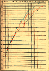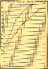 Fig. 101. Artificial feeding, first with diluted (blue) and then with undiluted milk (red). The blue part of the curve persistently falls away from the normal line which the red part rapidly approaches. | |