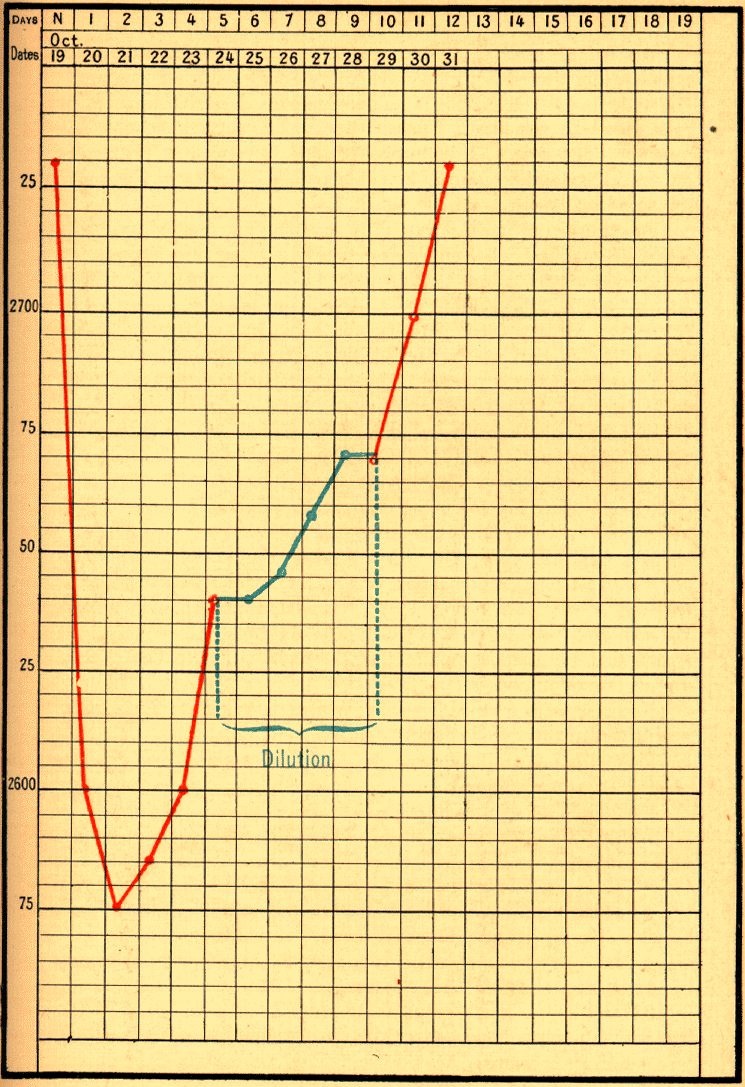 One day an engineer entered my consulting room. "I am bringing to you," said he, "my child one month old. He is in the next room with my wife, but I want to tell you beforehand that I have had syphilis, and that my wife, without her knowledge, was treated for that complaint during her pregnancy. Our child was born at full term, but he has had to be fed on cows' milk, as my wife could not suckle and I did not wish to bring in a wet-nurse. He weighed 3000 grams at birth and has not gained since. I am afraid that he also is infected, and I have come to see if you can do anything for him."