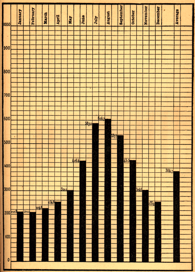 Fig. 128. Mortality from diarrhoea during the different months of the year, showing the considerable increase during the summer. |