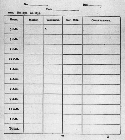 Recording the Quantities of Milk Taken by an Infant at Each Meal During the Twenty-Four Hours
