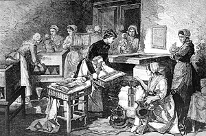 In the accompanying Illustration the reader will find a representation of these incubators, which have been employed with great success as "La Maternité" since 1881, and which are now being introduced into other Paris hospitals. Science has long been preoccupied with the question of the treatment of feeble, and especially prematurely born, children. M. Tarnier's incubator is the latest contribution to the solution of the problem. One of these incubators employed at "La Maternité", the one on the old model, is composed of a wooden box, the sides of which are about 4 or 4 1/2 inches thick, hollow, and filled with sawdust for the sake of insulation. This box, resting on a stand 3 ft. high, is 27 inches broad and 31 inches deep; it is divided into two compartments by a central partition. In the upper compartment is placed the infant, and in the lower one a metal reservoir, containing about 15 gallons of hot water. To this reservoir is fitted a thermo-syphon, by means of which the water may be heated with gas, spirits of wine, or a petroleum lamp; and between the reservoir and the inclosing box a space is left for the circulation of air, which enters at the bottom of the box, rises as it becomes heated, and escapes through orifices in the lid of the box, which is fitted with a pane of glass. The upper compartment has, besides the movable glass lid, a lateral door, through which to slide the cradle in and out; and it is separated from the lower compartment by a board pierced with holes, through which the warm air penetrates. The temperature of the upper compartment thus heated is maintained at about 89 1/2 deg. Fahrenheit. At the Lariboisière hospital 93 deg. Fahrenheit are taken as the standard; but this question of the temperature to be preferred has not yet been definitely settled. As regards the means of heating the incubator, gas is employed at the Hôpital de la Charité, and an electrical alarm-bell attached to a Regnard regulator rings when the temperature rises beyond a certain point.