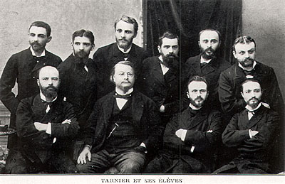 Above: Tarnier and his students and colleagues, including Budin. Click image to view a larger version. Source: NLM Historical Images in Medicine web site.